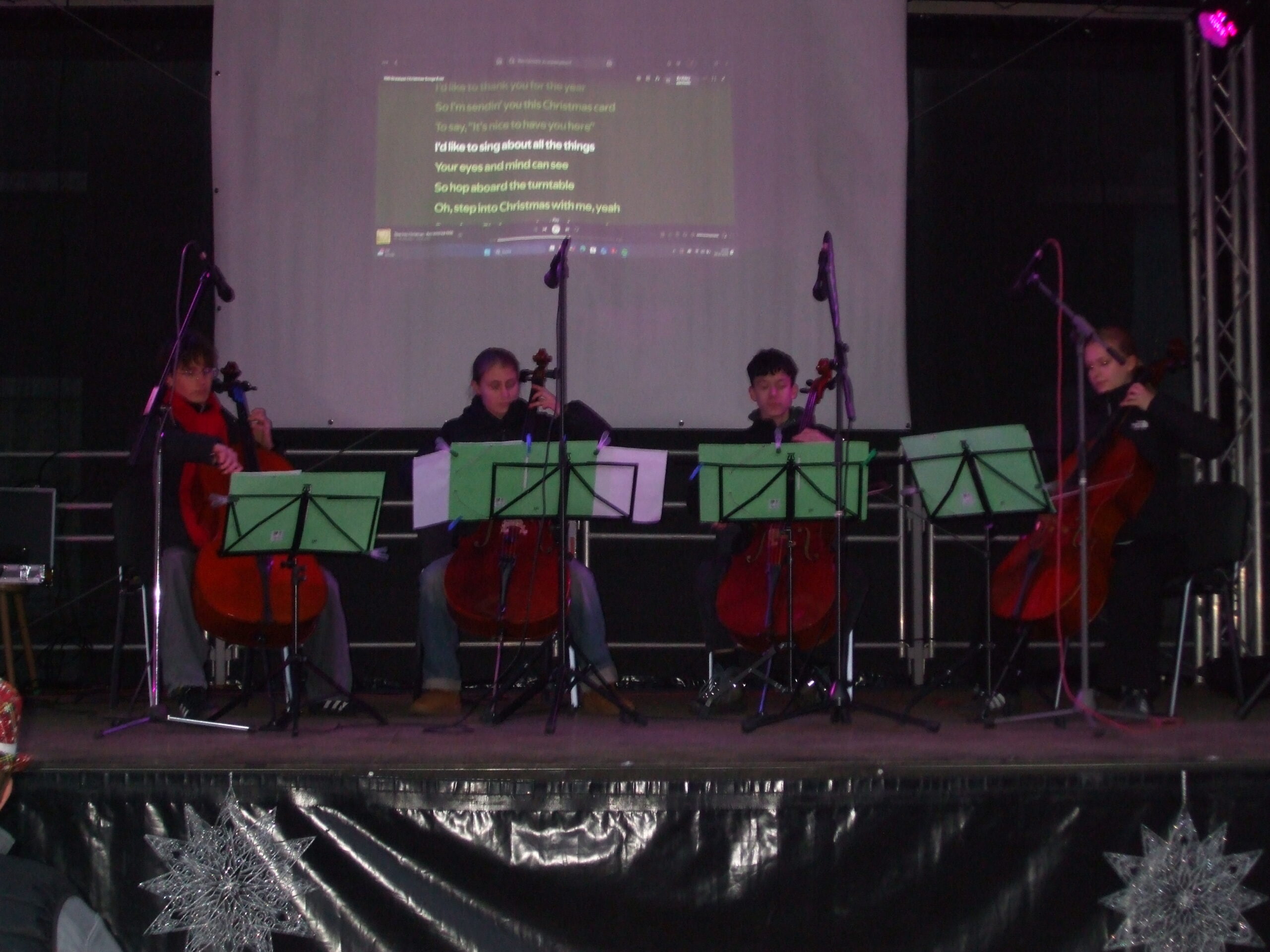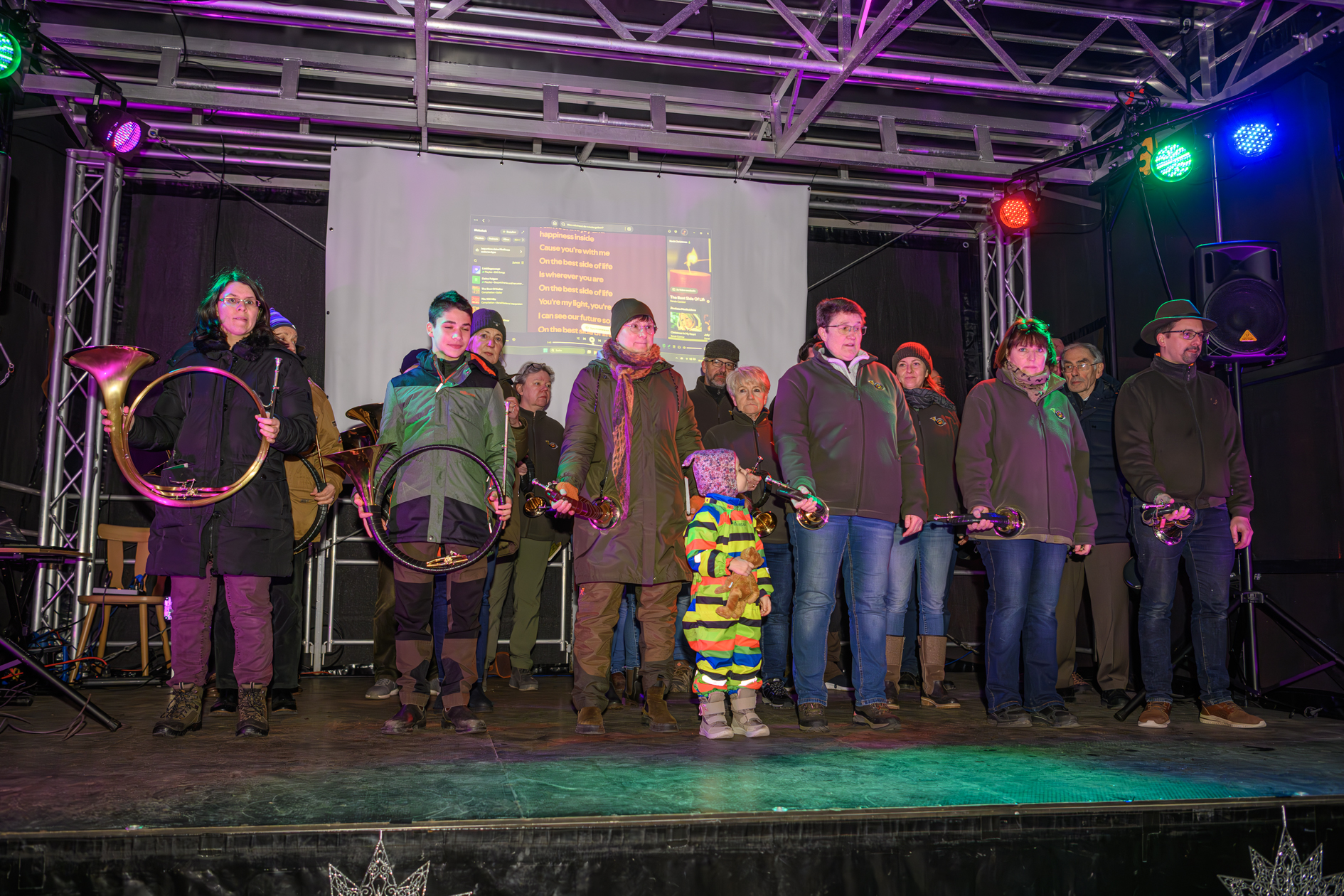 Den Start der Musikalischen Untermalung machten am Freitag die Ahltener Musikanten mit vielen traditionellen und bekannten Weihnachtsliedern. Es folgte das Jagdhornbläserkorps „Das große Freie“ mit Musikstücken aus dem Jagdwesen und weiteren Volksliedern. Beim Auftritt des Flötenorchesters am Samstagmittag war der Höhepunkt beim Auftritt eines kleinen Trommlers zum Stück „Little Drummer Boy“. Mit „Es ist Weihnachtszeit“, einem Medley aus mehreren Weihnachtsliedern, konnten die Besucher fröhlich Mitsingen. Einen weiteren Auftritt hatte das Cello-Ensemble der Kreismusikschule Peine, welche klassische Stücke aus ihrem Repertoire und adventliche Musik spielte.